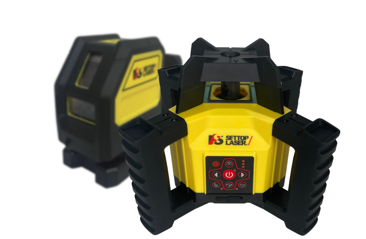 Niveles láser para trabajos en cosntrucción de interior y exterior. Tareas de alineación, nivelación, levantamiento de paredes, control de vertical pueden ser realizados con los diferentes equipos de Settop.