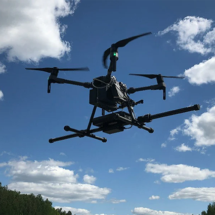 El sistema consiste en un magnetómetro integrado en UAV. La integración completa se garantiza añadiendo al sistema el ordenador de a bordo SkyHub. El vuelo del dron se planifica y gestiona mediante el software de planificación de vuelos UgCS.