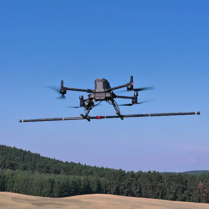 Un magnetómetro integrado en un dron puede detectar variaciones en el campo magnético terrestre causadas por estructuras subterráneas, depósitos minerales u objetos enterrados. Un magnetómetro mide la intensidad y/o la dirección del campo magnético en sus proximidades. Detecta y mide la intensidad y, a veces, la dirección del campo magnético. El uso de un magnetómetro en un dron permite escanear la zona y detectar metales varias veces más rápido que los dispositivos de uso terrestre y permite obtener mapas georreferenciados de la zona.