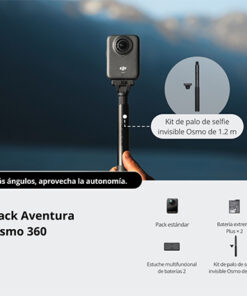 Es compatible con accesorios de la serie Osmo Action y cuenta con un orificio roscado de 1/4 pulgada. Cambia fácilmente entre modos de grabación con el palo de selfie y el adaptador ajustable de liberación rápida [7]. - Conexión directa de micrófono OsmoAudio™ [8]